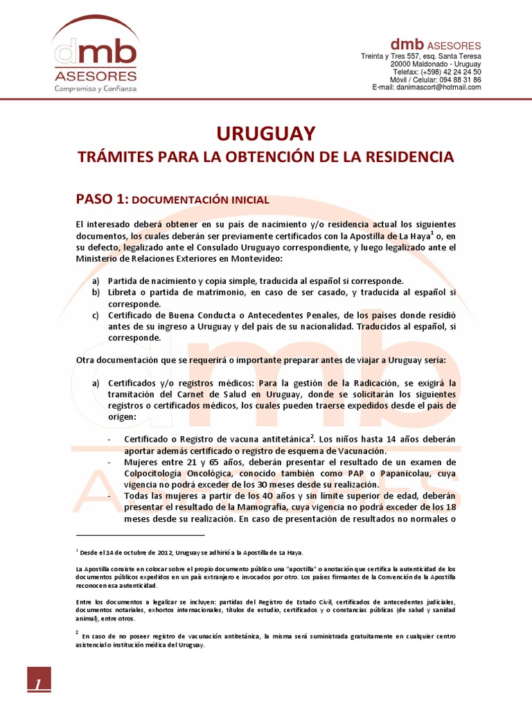 El proceso para obtener el certificado de residencia en Uruguay es el siguiente: