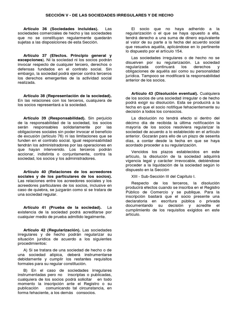 Una sociedad de hecho en Uruguay es una forma de sociedad mercantil no constituida formalmente, pero que surge de la cooperación y la vinculación entre dos o más personas que buscan realizar una actividad comercial o empresarial conjunta. Aunque no se ha constituido formalmente, la sociedad de hecho se considera una forma de sociedad comercial y está sujeta a las normas y regulaciones aplicables a las sociedades mercantiles.